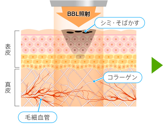 「BBL光治療」は、シミ、そばかす、くすみ などで
